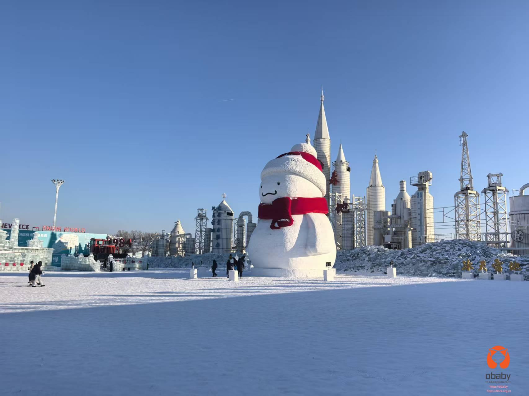 超级巨大的雪人,真的好可爱啊。之前从来没见过这么大的雪人。这个小表情也蛮有意思的。