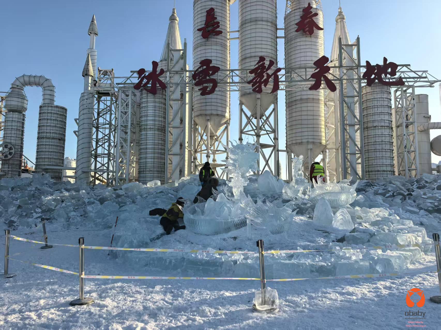 公园里,依然是各种雪雕冰塑,冰滑梯还是孩子们的最爱。