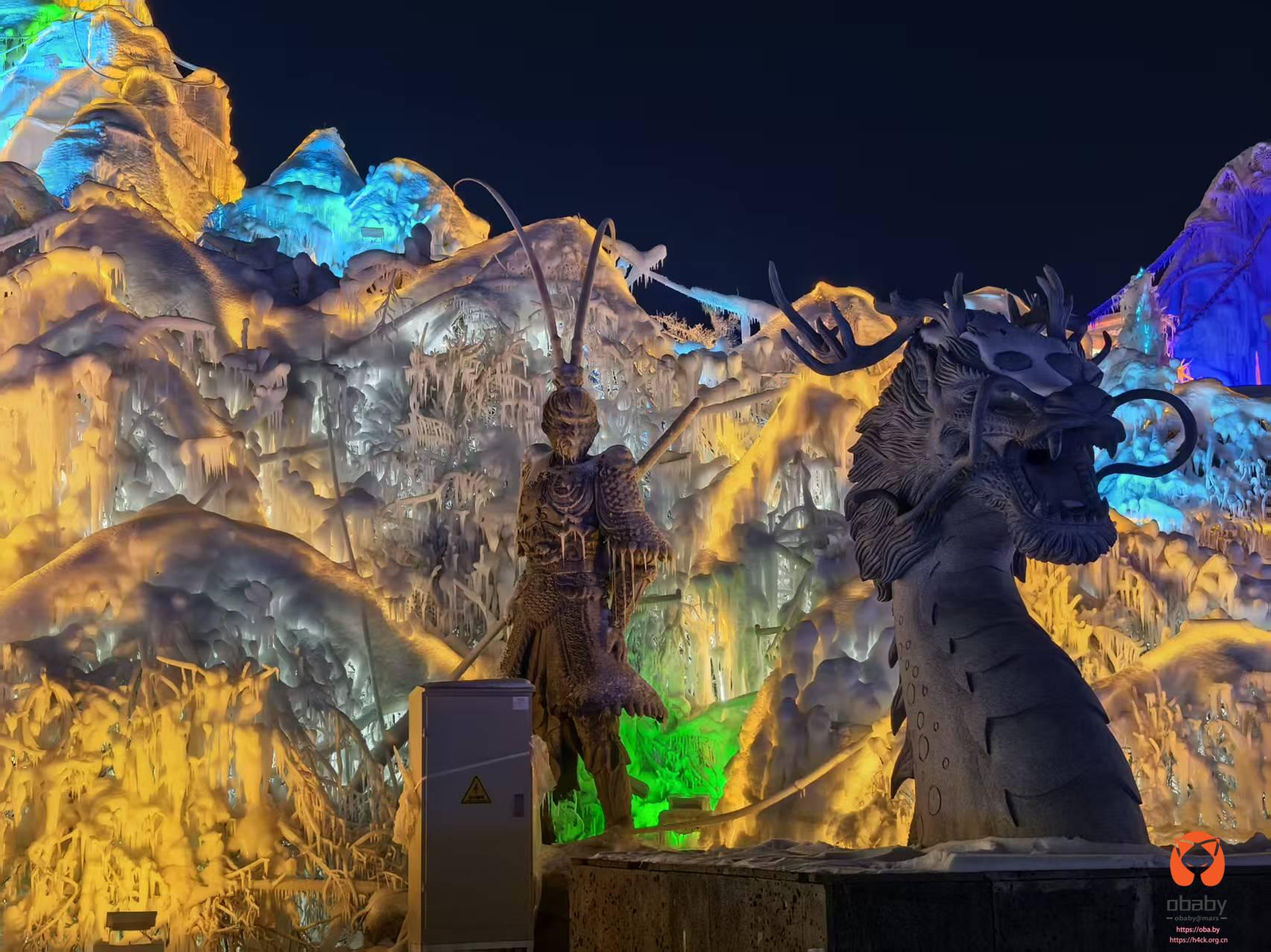 另外一侧就是各种巨型冰雕,白天看,除了巨大,似乎也没有太多的其他的感受。