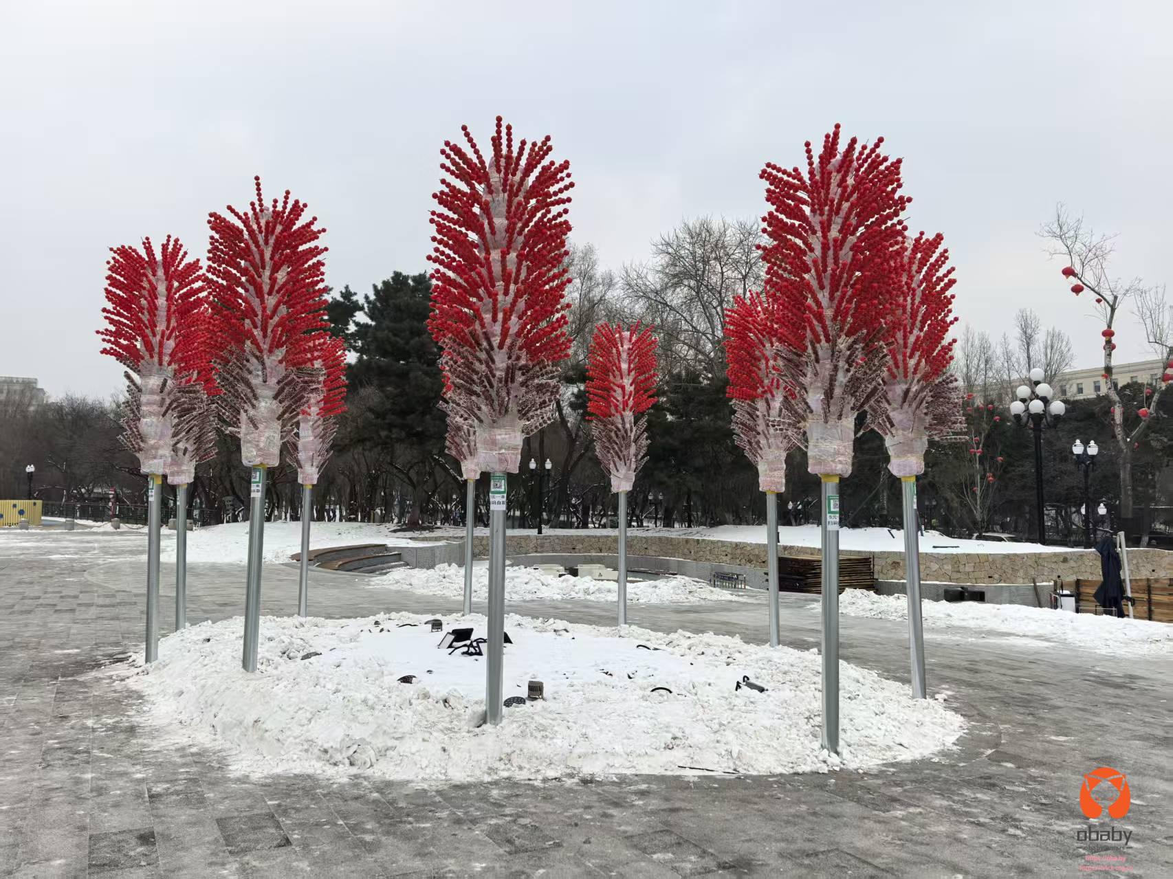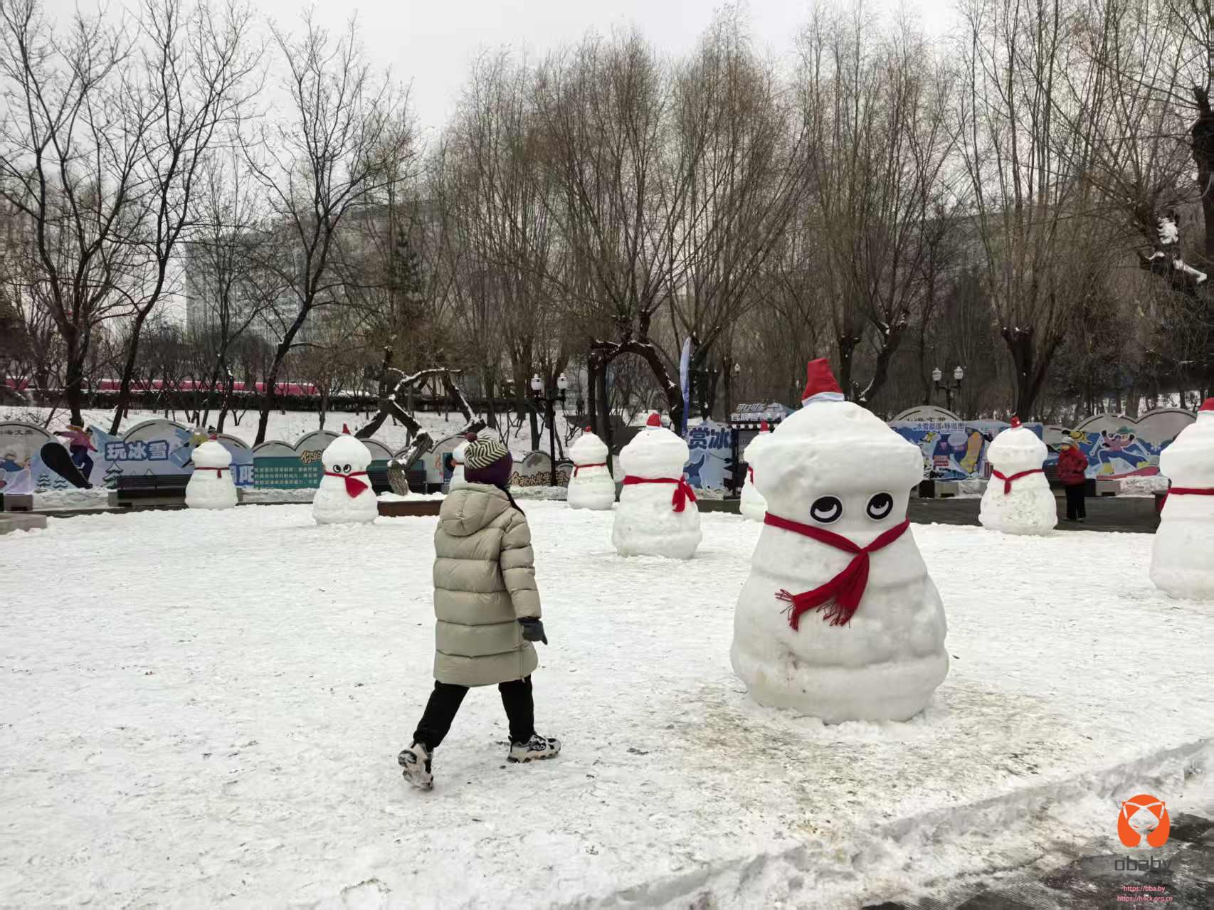沿着台阶上去,路边是两排雪人,这才是冬天正确 打开方式吧。