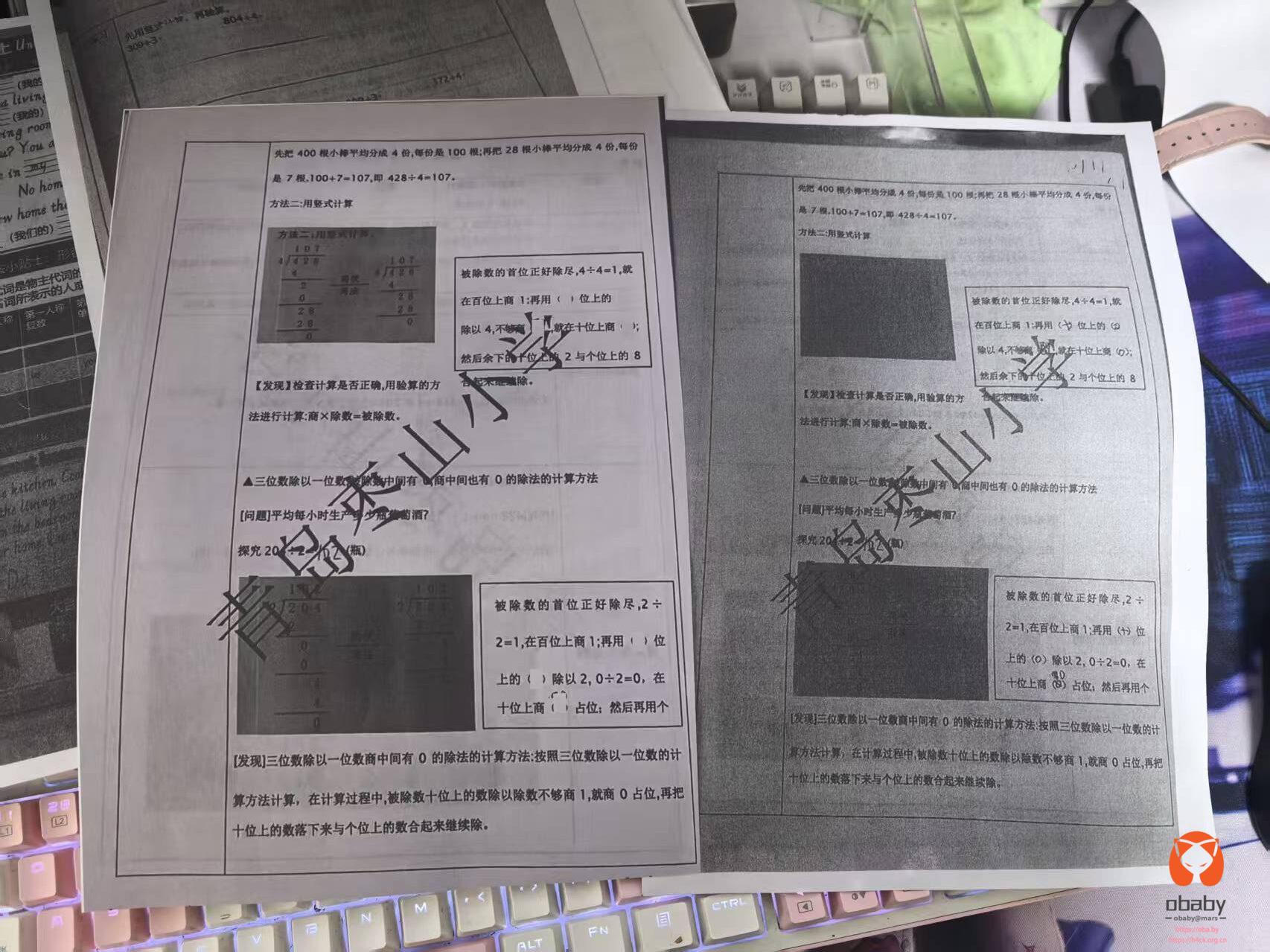 不过虽然折腾了不少,但是实际做了就一页内容,晚上回家重新打印作业,用ps把上面的内容扣掉,然后打印出来再做,对比下效果就会发现,一块钱一页打印的内容,黑色区域连算式都看不清楚(左侧石我重新打印的),怎么做?